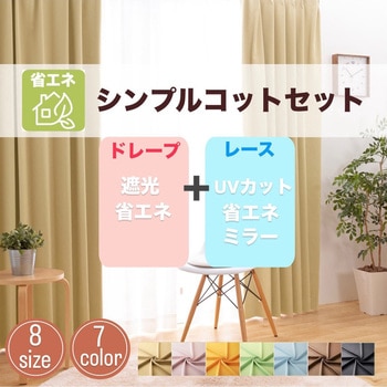【レースセットカーテン】 1~2級遮光 断熱 保温 UVカット ミラー シンプルコットセットユニベール