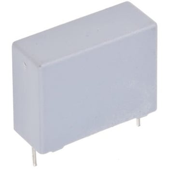 静電容量 = 1μF電圧 = 310V ac実装タイプ = スルーホール許容差 = ±10%シリーズ = F1772リード間隔 = 27.5mm長さ = 31.5mm奥行き = 15mm高さ = 25mm寸法 = 15 x 25 x 31.5mm温度特性 = ポリエステル末端仕様 = スルーホール実装リード径 = 0.8mm(EN132400) CEI384-14 iss. 2継続認定、VDE0565-1クラスX2、SEV1055 1978、DEMKO CEI384-14 1981、SEMKO CEI384-14 1981、NEMKO CEI384-14 1981、FIMKO CEI384-14 1981、UL1283 / UL1414 (最大1 μF)、CSA222 No.8-M 1986、IMQ CEI40-7/V1-1981、OVE CEI384-14 1981. X2クラス干渉防止コンデンサ、F1772-2000シリーズ310 V ac. 相間又は相とニュートラル間に取り付ける干渉抑制用メタライズドフィルムコンデンサ エポキシ樹脂封止型の難燃性ケース