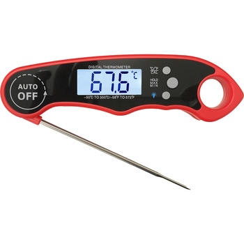 計測した最低/最高温度の記録ができ、確認が出来ます。温度測定時間は約2~4秒と早く計測出来ます。必要に応じて簡単な手順で、測定基準の簡易キャリブレーションが出来ます。折りたたみ式計測プローブは回転致しますので、計測対象物の位置に自由度があります。プローブの先端がわずか1.7mmと細く、食材に刺しやすくなっています。大きくて明るいバックライト付きディスプレイ。バックライトはオン/オフでき、5秒で自動オフになります。測定表示値を固定する温度ホールドを機能装備。計測対象食材から離しても確認出来ます。操作がされない状態では10分後に自動的に電源オフになり、バッテリー寿命が維持されます。