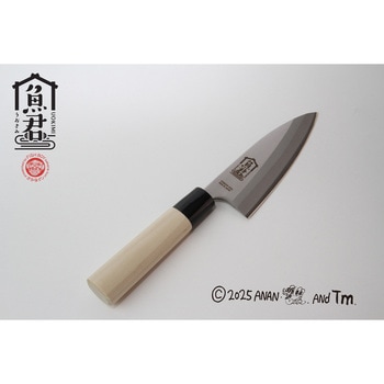 さかなクンプロデュース企画!ギョギョッ!!この出刃包丁さん一本で、どのお魚も鮮やかに調理できちゃうまさに超理想な調理包丁【特徴】当製品は厳選された刃物鋼を使用し厳しい品質管理のもとに作られたお料理包丁になります。錆に強くて切れ味が長持ちするステンレス鋼で抜群の耐食性と実用性を誇ります。手首の負担が少ない軽量タイプです。【取り扱い説明書】ご使用の際は使用上の注意をよくお読みになってからご使いください。またこちらの表紙は必ず保管してください。【ご使用前に】初めてご使用になる前に、中性洗剤を使用し柔らかいスポンジ等で洗浄して下さい。【ご使用上の注意】刃物ですので取り扱いや保管には充分ご注意ください。刃で手や指を傷つけないようにご注意ください。破損または変形した場合には使用しないでください。洗浄の時は刃先に気を付けてくだい。子供の手の届かないところに保管してください。また子供が使用するときは必ず保護者がそばについてご使用してください。左右にこじって使用しないでください。刃欠け、折れ、割れが起きたり刃先が曲がる場合がございます。固い野菜を切る場合は食材を電子レンジなどで温めると切りやすくなります。包丁を火であぶったり、火の傍に置いたりしないでください。火傷の危険があります。また切れ味が悪くなる要因になります。塩分や汚れが付いたまま放置したり、水の中に長時間漬けたりしないでください、錆びの原因になります。冷凍食品は完全に解凍してからご使用ください。電子レンジやオーブンの中に入れて乾燥しないでください。【お手入れ方法】ご使用後は柔らかいスポンジに台所用洗剤をつけて洗い、よく水洗いした後、水分を拭き取り乾燥させてから収納してください。錆が発生した場合はスポンジにクレンザー等をつけて洗うか砥石で研ぎなおしてください。月1~2回を目安に研ぐと良い切れ味が持続します。金属たわしなど硬いもので洗うと傷つきますのでご注意ください。食器洗浄機・乾燥機はご使用いただけません。【ご使用方法】魚を捌くのに必要な出刃包丁になります。ステンレス鋼なので錆びの心配なくご使用ができます。鋼と同じような切れ味をお試しください。