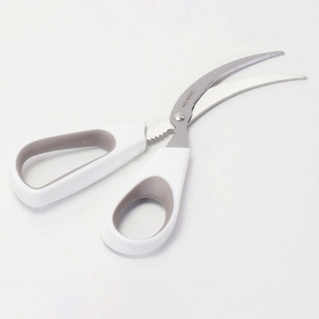 長いギザカーブ刃で、食材を逃がしにくいカーブはさみ。皮やスジのある肉、イカやタコなどのカットにも。カーブしているので、お皿の上でも切りやすく食材の下ごしらえに最適です。ペットボトルのキャップ外しにも。手が痛くなりにくいソフトグリップです。刃は丈夫なステンレス製。食器洗い乾燥機対応なので、お手入れも簡単です
