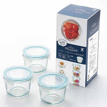 グラスコンテナ3点ロック式ガラス保存容器 ミニ丸型ヨシカワ