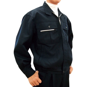 丈夫な綿混素材の作業ブルゾンです。両胸の大型ポケットは収納力抜群です。裾はフィット感の良い脇ゴム仕様。同シリーズで長袖シャツ、ベスト、カーゴパンツ、スラックスと上下セットで着用いただけます。
