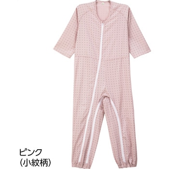 38728 介護用フルオープンつなぎパジャマピンク小紋柄Lケアファッション