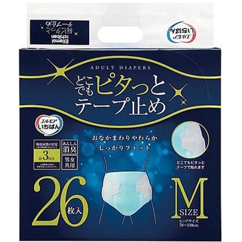 おむつの厚みをおさえたうす型吸収体を採用。どこでもピタッと止まるテープと重ね貼りできるシートで体形に合わせて調節できます。