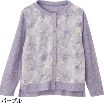 822230 オーガンジー花柄切替カーディパープルM~Lケアファッション