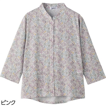 822115 7分袖スナップ釦前開きTシャツピンクM~Lケアファッション