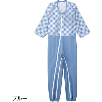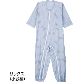 38728 介護用フルオープンつなぎパジャマサックス小紋柄Lケアファッション