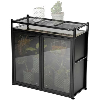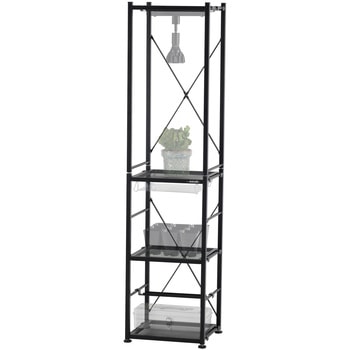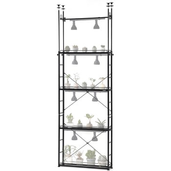 【スリムな植物棚】ちょっとした隙間にも設置できる薄型設計。狭いお部屋で鉢の置き場に困っている方や、沢山のコレクションをおしゃれにレイアウトしたい方におすすめです。付属の専用バーには市販のダクトレールが取り付けでき、植物育成ライト・サーキュレーターなどをセットすることができます。【レイアウト自由自在】棚板とダクトレール取り付けバーの高さをそれぞれ自由に変えられます。また、左右に連結できるため、植物のコレクションが増えても育成スペースを簡単に拡張できます。シンプルな設計なので、DIYが苦手な人でも簡単に組み立てられます。【通気性の良いメッシュ天板】鉢底が蒸れにくいメッシュ素材を採用。植物育成ライトの光や、サーキュレーターの風が植物全体に効率良く行きわたります。【吊り下げ植物にも】アガベなどの鉢植え植物のほか、ビカクシダなどの吊り下げ植物をダクトレール取り付けバーに掛けて飾ることもできます。【植物を高い位置に飾れる】上部に棚板をセットすれば、暖かい空気がたまりやすい高い位置に植物を飾ることができます。耐寒性の低い植物の冬越しにおすすめです。