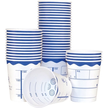 50mlから400mlまで両側目盛り付きの両面ラミネート加工した内目盛り付き検査カップ(バリウム検査対応)です。