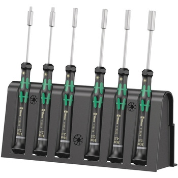 ヴェラの高品質精密ドライバー6点セット。ハンドル後部の早回しキャップを用いて、早回しが可能です。これにより作業速度が向上し、ハンドルを握り直す手間も省けます。ブラックポイント刃先仕上げにより、耐食性が高く正確にネジにフィットします。精密ドライバー用ラック付き。転がり防止と早回しキャップ付き。”Take it easy”色分けシステム:形状によって色分けされています。