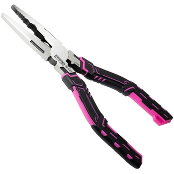 ゲンバ女子御用達「BLACK PINK」シリーズ。ネジ外し機能を搭載した、電設工事用の多機能ペンチ。鋭利なせん断刃で、VVFΦ2.6×3芯をラクラク切断できます。潰れたネジ、錆びたネジを先端のタテ溝で掴んで回せます。独自の先端形状により、頭の低いネジ(トラスネジ)にも対応。先端で縦に掴めるため、狭い場所でも作業できます。2種類の切断刃を使い分けることで、切断刃の劣化損傷を防止します。オフセット タテ溝で壁際の潰れたネジも掴んで回せます。また、細い結束バンドなども確実に掴めます。ラウンド ヨコ溝が板材やナットに密着し、確実に保持します。簡易圧着機能付き。軽量で使用時や携行時の負担を軽減します。グリップは耐油性に優れ、環境に優しいエラストマー。手によくフィットするデザイングリップ。落下防止用ストラップホール付き。