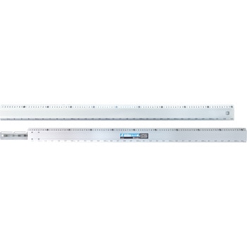 裏面度量衡換算表付、大工さんに便利な尺相当目盛付の定規です。尺相当目盛、cm目盛のどちらかの目盛が本体の上段にあった場合、その目盛の基点が左側端面になる仕様のW左基点タイプです。シルバー加工で表面の反射を抑え目盛が読み取りやすくなっています。エッチング加工+メッキ目盛で、過酷な使用状況下でも性能を落としません。