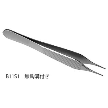 先端が点でなく面で合わさり微細な組織、縫合糸を確実に保持。ハンドル部に開閉距離を一定に保つストッパーがついてるので適度な先端の開きと握りこみを防ぎ、スムーズに操作ができます。