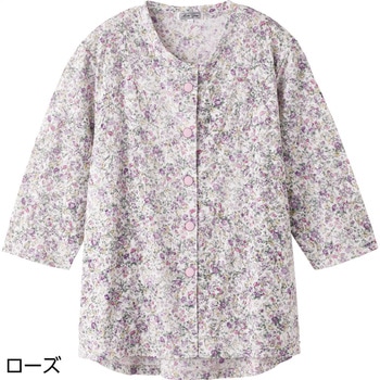 822242 7分袖スナップ釦ブラウスローズM~Lケアファッション