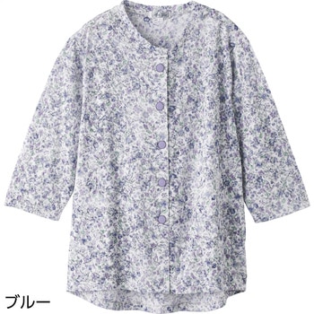 822149 7分袖スナップ釦前開きTシャツブルーパープルM~Lケアファッション