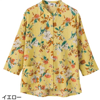 822149 7分袖スナップ釦前開きTシャツイエローM~Lケアファッション
