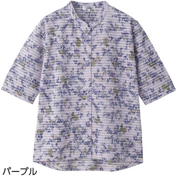822145 スナップ釦前開きTシャツパープルM~Lケアファッション