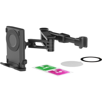 超強力マグネットにより13インチクラスの大型タブレットからスマホまでワンタッチで着脱出来ます。ヘッドレストシャフト取付専用のマグネット式タブレットホルダーです。画面を遮らないデザインの為、視界性が高くタッチ操作もスムーズです。多関節スイングアームとボールジョイントの採用により見やすい向きに調整出来ます。スイングアームは左右に大きく動かせるので後部座席の中央寄りに設置出来、画面を共有出来ます。未使用時はスイングアームを折りたたんでコンパクトに格納出来、乗降り時も邪魔になりません。付属の金属リングを貼ればMagSafe非対応のスマホやタブレットも簡単にホールド出来ます。