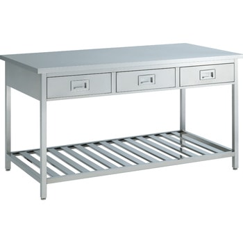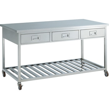ステンレス実験台・作業台 片面 キャスタータイプ 棚無 引出し付 1800×600×850mmオカムラ(岡村製作所)