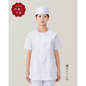 調理衣 レディース 半袖 衿なし 白衣 厨房 飲食店 ユニフォームサーヴォ(旧:サンペックスイスト)