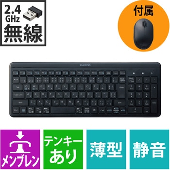 キーボード ワイヤレス マウス付 無線 USB 抗菌 薄型 フルサイズ メンブレンエレコム(1件のレビュー)