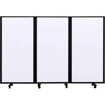 通常はパーテーションとして、お打合せ時はホワイトボードとしても利用できます。マグネットでの掲示も可能。ブラックの枠と脚部品で、おしゃれなデザインです。ぴったりたためて省スペースで収納できます。4つのキャスター付ベースで耐震性も高いです。