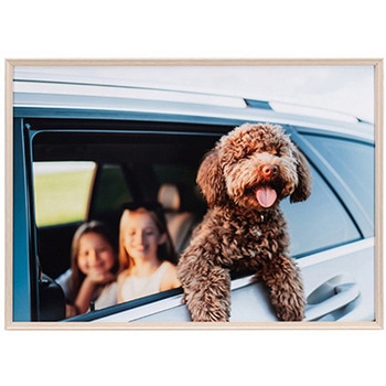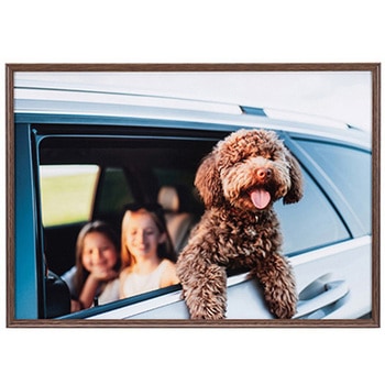 人気のミュートカラーを採用した個性的な木目調のアルミフレーム。フレームデザインは、トレンド感のある細フチ、内側に向かって傾斜する内流れの形状で、写真や作品の魅力を余すことなく表現します。写真/OA用紙サイズがそのままダイレクトに入れられるフレーム。アートやポスターのように、壁面と平行にピッタリと隙間なく飾れるフラット構造で、すっきりと洗練された印象に整います。フレームはアルミ製で強度があり、深さのあるこだわりの設計で、写真だけでなく厚みのある作品も収納が可能です。表面材にはUVカットアクリルを採用し、紫外線による額縁内部の写真等の経年退色を抑制します。アクリルはガラスに比べ約半分の軽さながら同等の衝撃強度と高い透明性を兼ね備えています。また、裏板には環境に配慮したグリーンエンボス(軽量紙製)を採用し、更なる軽量化を追求しました。軽量化することで額装時の作業の効率化にも繋がり、フレームを飾る壁面への負担や落下した時のダメージを軽減できます。グリーンエンボス裏表面の紙は古紙70%、芯材は古紙100%をリサイクル使用。使い終わった後も100%のリサイクルが可能です。飾る場所やお部屋の雰囲気、写真のイメージに寄り添うミュートカラー(木目調)グレー、ナチュラル、ブラウンの全3色をご用意。吊り紐を掛けるフック等のサイズによって壁面とフレームに隙間ができる場合があります。UVカット率90%以上額縁内部の収納物の経年退色を保証するものではありません。