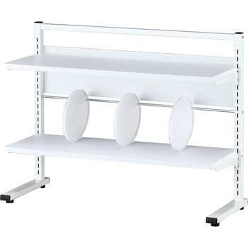 液晶ディスプレイ下の空間を有効活用できます。前面にUSBハブが組み込まれており、マウスやキーボード、USBメモリなどに使用することができます。※供給電流をご確認ください。USBハブは前面左右、側面に取り付け可能で使用環境に合わせての設置ができます。液晶ディスプレイの位置を上げることで、目線の位置を上げ画面を見やすくすることができます。キーボードを使わない時は、机上ラック下の空間に収納することでデスクを広く使用することができます。
