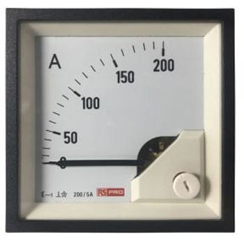 RS Pro AC アナログパネル電流RS Pro 72 mm x 72 mm カットアウト AC アナログパネル電流計は、 0 → 5 A 入力、 0 → 200 A SC 、 200 / 5 A CT の測定範囲を備えています。DIN スタイルパネルメータは、可動鉄片で構成されています。これは真の RMS 値を示し、システム波形とは実質的に独立しています。このスケールは、最低 10 % までキャリブレーションされており、モータの突入電流を測定するために、 X2 、 X3 、 X5 、又は X6 の過負荷スケールを備えている場合があります。成形ポリカーボネートケースに収められており、 15 400 Hz の周波数範囲での AC 電流の測定に適しています。特長と利点 動作温度範囲: -10 ° C ~ 65 ° C 精度: 1% ポインタ:ナイフエッジタイプ ポインタのたわみ :0 ° ~ 90 ° 公称使用範囲: 100 mA ~ 100 A 直接接続 耐衝撃性: 15 g (パルス持続時間 11 ミリ秒 制御装置 / スイッチギアパネルを機械コンソールに取り付けるのに適した、成形角型ケース 過負荷:公称電流の 2 倍(連続) 相対湿度:年間平均 75% 未満(結露しないこと)認定 UL 94 V-0 認定 2014/30/EC ( EMC 指令) 2014/35/EC (低電圧指令) CE認定 IP52等級 EN61010 VDE0100 ~ 410 : 2018-10 認定 IEC529 IEC61010 ISO20653:2006-08