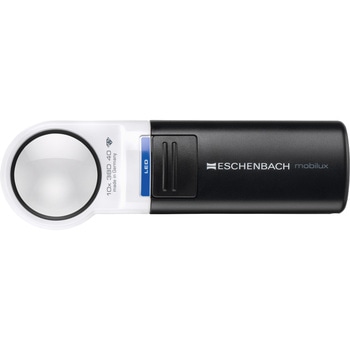 明るさを調節できるLEDライト10灯内蔵型のLED調光ルーペ(倍率3倍)。