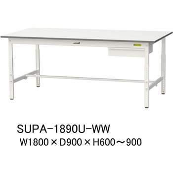 軽量作業台/耐荷重150kg_高さ調整式_引き出し付_ワークテーブル150シリーズ_低圧メラミン天板山金工業