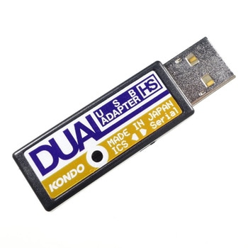 付属のUSBアダプターを使用して有線でPCと通信することができ、ロボットのメンテナンスからモーションの作成と登録・再生が行えます。