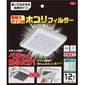 換気扇・空気清浄機用のホコリフィルターです。貼ってはがせる粘着タイプで、汚れたらはがして捨てるだけ。面倒な換気扇・空気清浄機の掃除が楽になります。交換目安がわかる取替えサイン付きです。のり残りしにくいタイプで、失敗しても貼り直し可能。剥がす時もべたつきにくく快適です。抗菌加工済