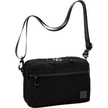 メッシュ風生地が爽やかでスポーティな横型ショルダーバッグ 約240gの軽さで快適な使い心地 2層仕様で仕分けして収納できます ペットボトルや長財布なども入ります