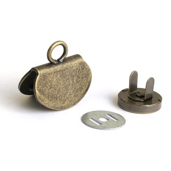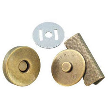 バッグの中が開くのを防いだり、フタを止めたりするのに便利です。布地に差し込み、座金の足を折り曲げて止めるタイプ。