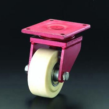 車輪は高荷重・ハイスピードでの使用に耐えられるボールベアリング仕様。一般的なナイロンに比べて耐荷重・圧力強度・弾力性・形状復元性に優れており、地面を転がる際の抵抗も少ないです。赤色塗装。プレート取付け型。耐熱温度35℃以上では負荷容量が減少します。