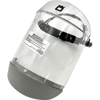 上面ガードの付いたタイプです。シールド上部にツバが付いていますので、シールド面が床に直接触れず傷が付きにくいです。ラチェット式ですので、位置やサイズの調整が可能です。様ーな酸性の化学薬品や塗料に耐性があります(フッ化水素酸を除く)。
