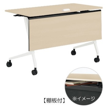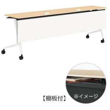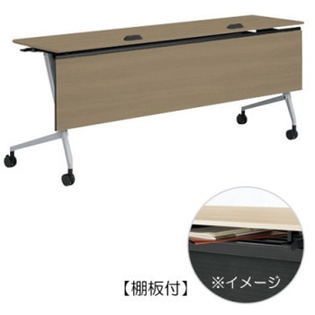マルカ サイドフォールドテーブル 棚板付 樹脂幕板無 1800×600オカムラ(岡村製作所)