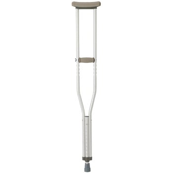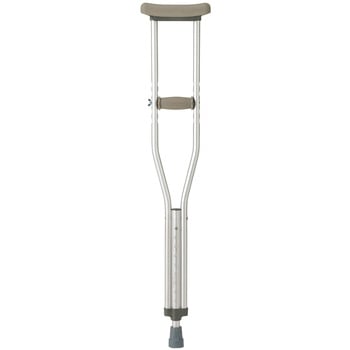軽くて丈夫なアルミ製松葉杖。ご使用の際は専門家のアドバイスを受け、体にあったものをお選びください。