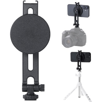 用途ポケットにも入る小型・軽量設計で持ち運びがしやすい、コンパクトなカメラ用マウントです。 一眼レフカメラ上部にあるアクセサリーシューに取り付け、ネジで締めて固定することが可能。一眼レフカメラで写真を撮りながら、スマートフォンで同時に動画の撮影ができます。 スマホホルダーは360度回転するので、縦向きでも横向きでも撮影が可能です。 4.7インチ~6.9インチまでのスマートフォンに対応しています。 スマホホルダーには落下防止のすべり止めが付いています。 前後180度に動かすことができ、スマートフォンをお好みの角度、位置に固定することが可能です。 マイクや写真用のライトなどの機器を同時に取り付けられるコールドシューが2つ付いています。 さまざまな三脚やスタンド、自撮り棒などに対応している1/4インチネジを採用しています。 持ち運びに便利な収納ポーチが付属しています。 自社環境認定基準を1つ以上満たし、『THINK ECOLOGY』マークを表示した製品です。 環境保全に取り組み、製品の包装容器が紙・ダンボール・ポリ袋のみで構成されている製品です。材質アルミニウム、ABS、シリコン色ブラック質量(g)58外形寸法(mm)Φ約27×約H112 ※突起部を含む対応機種4.7インチ~6.9インチのスマートフォン(※ホルダー最大伸縮範囲