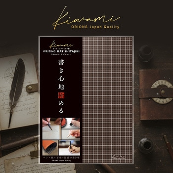 「書き心地」極めるKiwamiシリーズから究極の下敷、Kiwami ライティングマット下敷 A4+【ブラウン&キャメル】。これまでの下敷では感じたことのない圧倒的な書きやすさ、どんなペンでも書きやすくなる大人が使うべき究極の下敷。・書き心地を追求するために厚みや硬度、質感など品質についてディテールに至るまで精巧にこだわっています。・表面の方眼は正確な基準線ではっきりしたコントラストを表現するために1枚1枚を手作業で印刷。・方眼が印刷されていることで紙やノートに文字を書く際に文字の中心や位置どりがしやすい。・A4用紙より少し大きめのA4+(H306×W228mm)で、紙の端から端まで書きやすく、線引きもしやすい。・一回り大きいことで従来下敷のように万年筆やペンが下敷からずれ落ちることを回避。・紙の角端が下敷からはみ出ることなく、折れたりしわになったりするのを防ぐ。・裏面のゴールド箔押しが品のあるラグジュアリー感と大人の洗練された雰囲気を演出。・紙や土台に対してすべり止め効果のある特殊マット加工の再生PVC生地を使用。・表面は方眼タイプ、裏面は無地タイプでリバーシブル仕様。《”書く”にこだわったテクスチャ》・適度な厚みと重み、紙とすべり止めグリップの効いた表面摩擦が安定感を高め文字を書きやすくする。・無理なく強弱を出すことができ、「対比」のメリハリがつけやすいので、字の形を整えやすくする。・力の抜き加減のバランス調節がしやすくイメージ通りに文字の「とめ」「はね」「はらい」がしやすくなる。・微細エンボス加工を施したハイグレード2mm厚ソフトタイプ。・万年筆、ボールペン、シャーペン、筆ペン、鉛筆、ガラスペン、マーカー等どんな筆記具にも効果を発揮。・捺印に適したクッション性があり、適度な弾力性があるため印マットとしても秀逸の質感。・すべり止め効果のある特殊マット加工生地でマウスパッドとしても優秀。・裏面はワンポイント無地になっているのでラインが必要ない場面でも同じ書き味を実感できる。