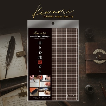 「書き心地」極めるKiwamiシリーズから究極の下敷、Kiwami ライティングマット下敷 A5【ブラウン&キャメル】。これまでの下敷では感じたことのない圧倒的な書きやすさ、どんなペンでも書きやすくなる大人が使うべき究極の下敷。・書き心地を追求するために厚みや硬度、質感など品質についてディテールに至るまで精巧にこだわっています。・表面の方眼は正確な基準線ではっきりしたコントラストを表現するために1枚1枚を手作業で印刷。・方眼が印刷されていることで紙やノートに文字を書く際に文字の中心や位置どりがしやすい。・裏面のゴールド箔押しが品のあるラグジュアリー感と大人の洗練された雰囲気を演出。・紙や土台に対してすべり止め効果のある特殊マット加工の再生PVC生地を使用。・表面は方眼タイプ、裏面は無地タイプでリバーシブル仕様。《”書く”にこだわったテクスチャ》・適度な厚みと重み、紙とすべり止めグリップの効いた表面摩擦が安定感を高め文字を書きやすくする。・無理なく強弱を出すことができ、「対比」のメリハリがつけやすいので、字の形を整えやすくする。・力の抜き加減のバランス調節がしやすくイメージ通りに文字の「とめ」「はね」「はらい」がしやすくなる。・微細エンボス加工を施したハイグレード2mm厚ソフトタイプ。・万年筆、ボールペン、シャーペン、筆ペン、鉛筆、ガラスペン、マーカー等どんな筆記具にも効果を発揮。・捺印に適したクッション性があり、適度な弾力性があるため印マットとしても秀逸の質感。・すべり止め効果のある特殊マット加工生地でマウスパッドとしても優秀。・裏面はワンポイント無地になっているのでラインが必要ない場面でも同じ書き味を実感できる。