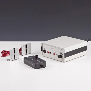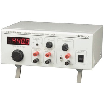 低周波発振器と増幅器およびスピーカーを一つにまとめたものです。低周波発振器としてだけではなく、音の実験の音源や波動実験の駆動源、電気実験の交流電源としてなどさまざまな物理実験に対応することができます。発振器と増幅器は別々に使用することもできます。周波数選択を容易にする「ロータリーエンコーダ」や「周波数メモリー機能」など使いやすさにこだわった機能が搭載されています。