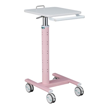 豊富なオプションにより使用用途に合ったカスタマイズが可能です。天板は450×580mmありノートPCを置いても十分な作業スペースがあります。天板はガススプリング補助により無段階で高さ調節が可能で手の小さい方でも操作しやすい形状のレバーです。全高850mmまで低くなるため天板高さ900mmのテーブル下に収納できます(テーブルの仕様により収納できない場合があります)。ハンドルは高さ約1mまで上がり背の高い人でもストレスなく搬送できます。キャスターは回転と旋回を止めるダブルストッパー付きで上から踏み込むことでロック・ロック解除を切り替え可能です。用途に合ったカスタマイズが可能。