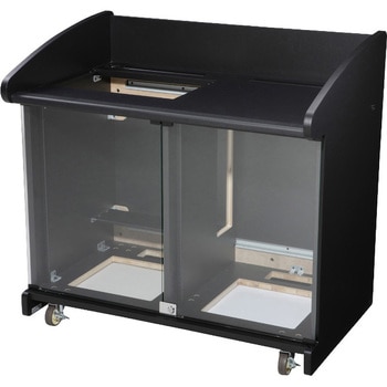 材質表面(水平操作部以外):コート紙黒(マンセルN1.0近似色)、水平操作部:メラミン化粧板黒、ガラス扉:透明強化ガラス(鍵付)