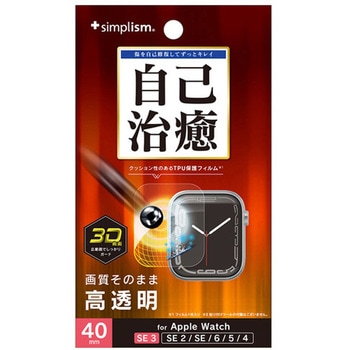 Apple Watch 40mm SE 3 / SE 2 / SE / 6 / 5 / 4 衝撃吸収 全画面保護自己治癒フィルム 光沢Simplism