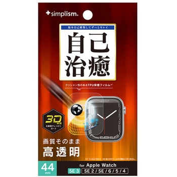 Apple Watch 44mm SE 3 / SE 2 / SE / 6 / 5 / 4 衝撃吸収 全画面保護自己治癒フィルム 光沢Simplism