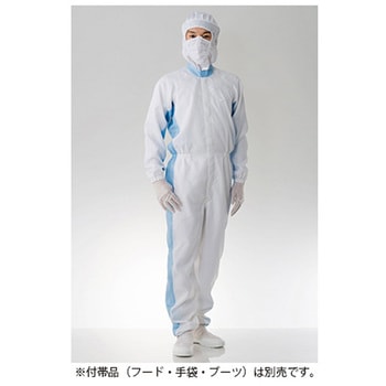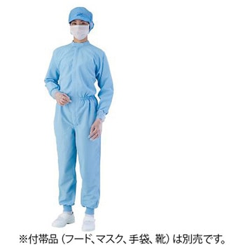 クリーンウェアフード一体ツナギ服 男女兼用 ブルー東洋リントフリー