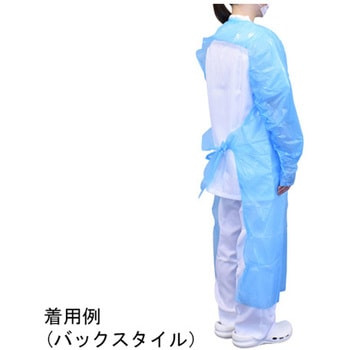 プラスチックエプロン袖付CF 指掛けタイプ ブルー 1ケース 20枚×12箱入イワツキ
